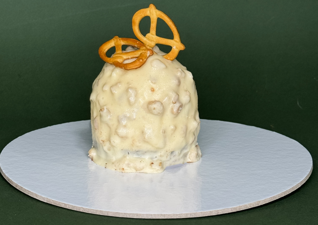 Kombinacija maka, oraha i tople bele čokolade sa malinama.